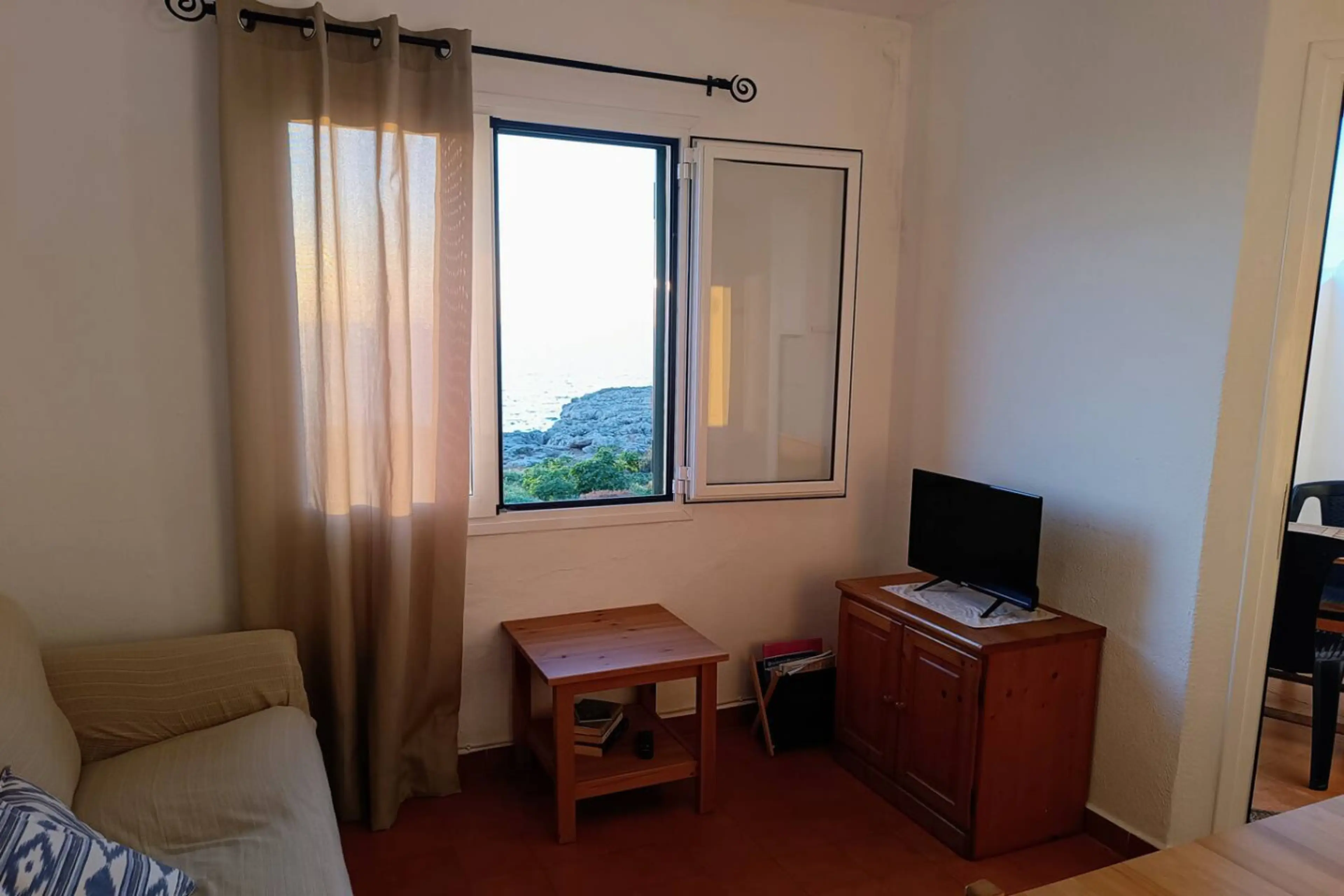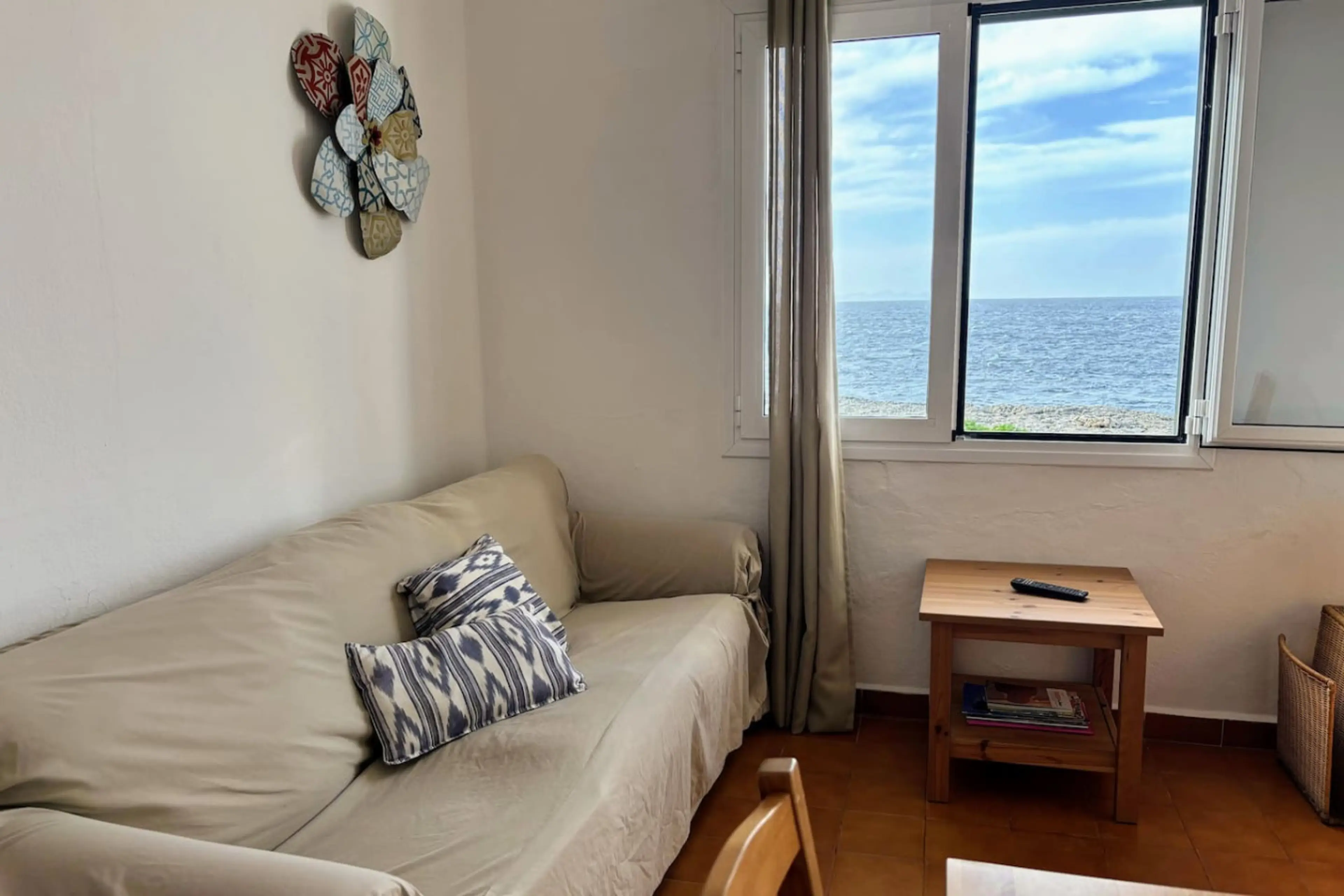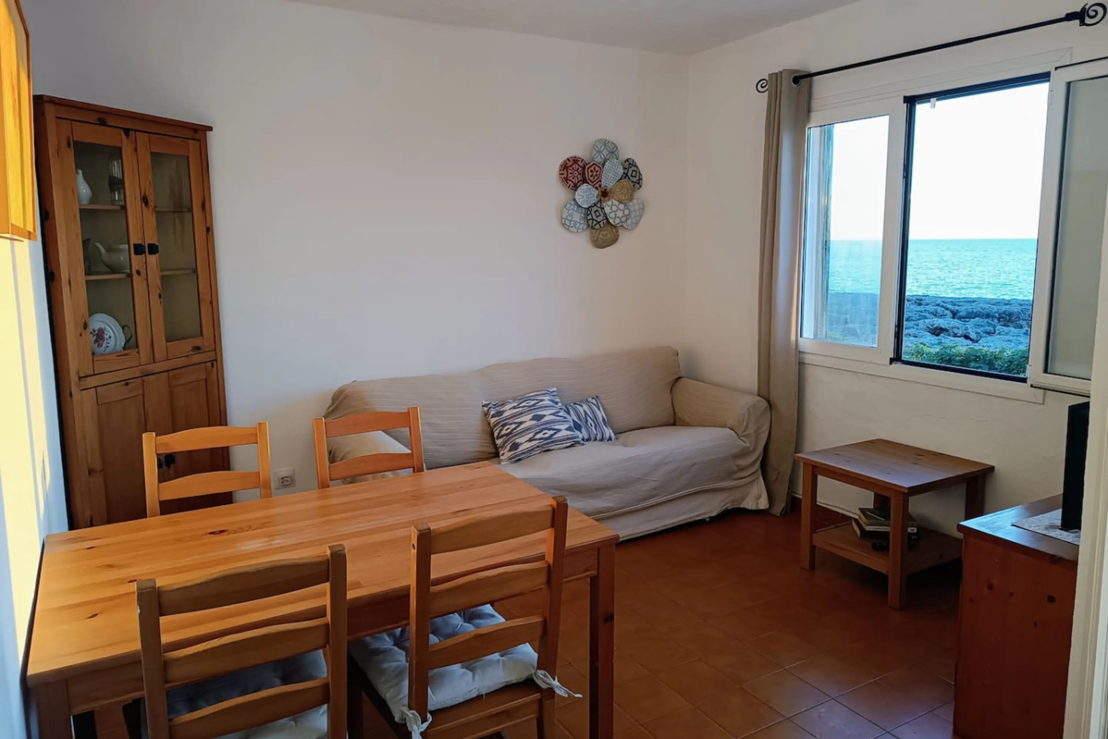 Situado en una zona tranquila frente al mar, a solo 300 metros de la playa de Cala Blanca, este acogedor apartamento para tres personas es ideal para quienes desean disfrutar de Menorca con la comodidad de un pequeño hogar junto al mar. Cuenta con una luminosa sala de estar, cocina totalmente equip...